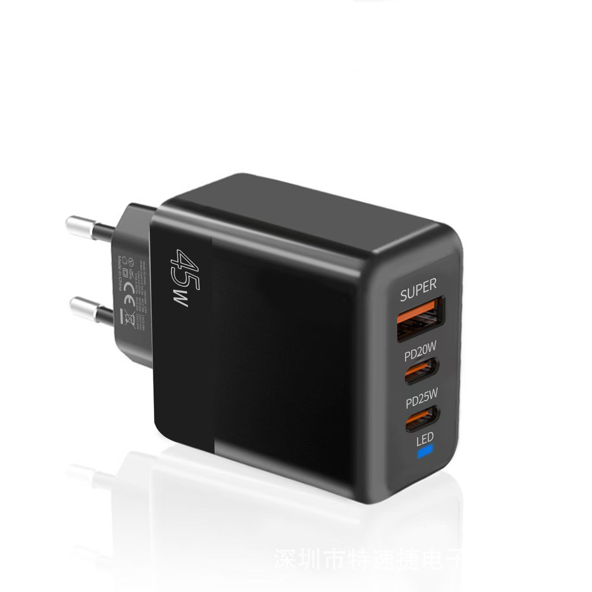 跨境45W充电头usb快充全协议type c适用华为苹果PD20W多口充电器